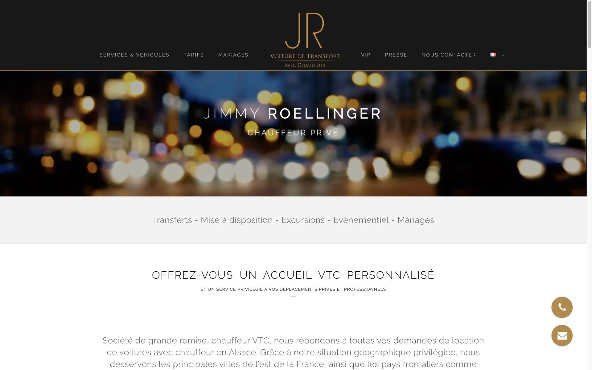 J’ai accompagné Jimmy Roellinger, chauffeur VTC, dans la création de son site Internet et de son identité visuelle. L’objectif était de concevoir une présence en ligne professionnelle et rassurante, permettant à ses clients de découvrir ses services et de le contacter facilement.